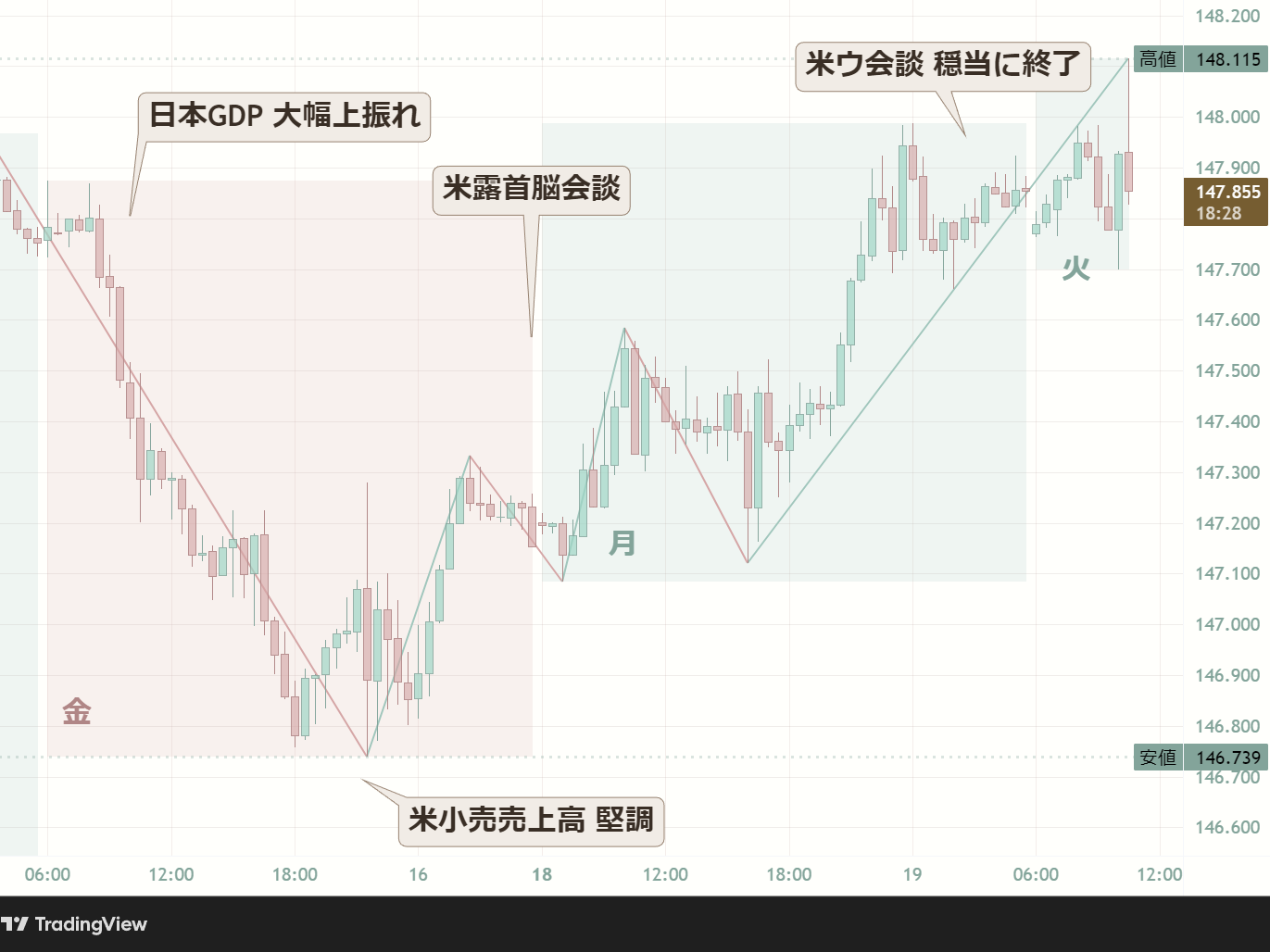 ■ ドル円は148円には届かず、欧州時間終盤の水準で方向感なく推移